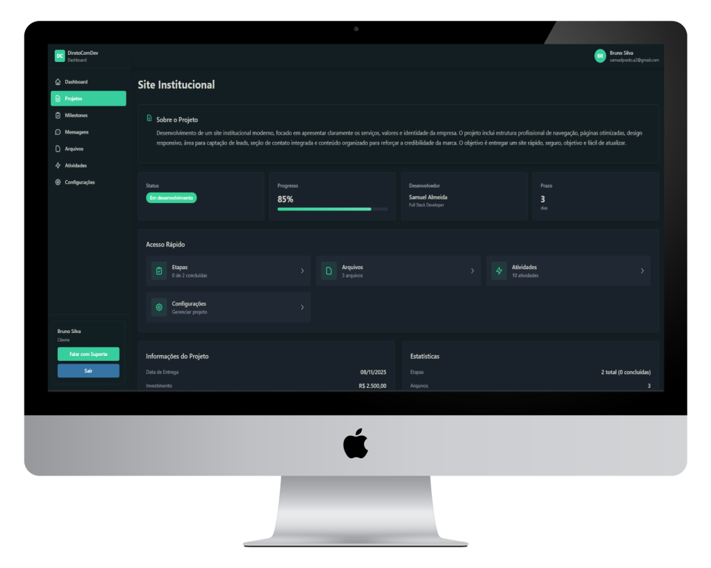 Converse direto com o desenvolvedor do seu projeto. Comunicação clara e objetiva.
